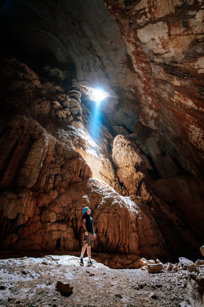 Una volta giunti alla cavità, indosserai casco e luce frontale (forniti da noi) e ti sentirai speleologo per un giorno, esplorando la grotta in tutta sicurezza con una guida esperta.